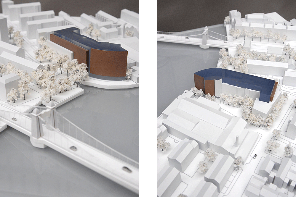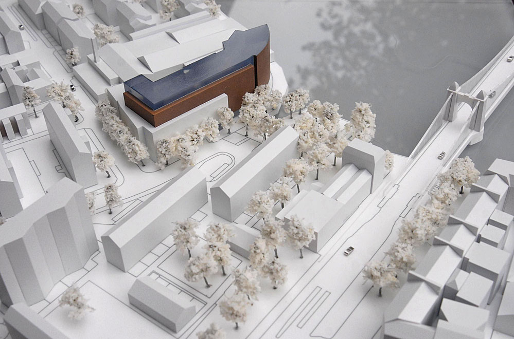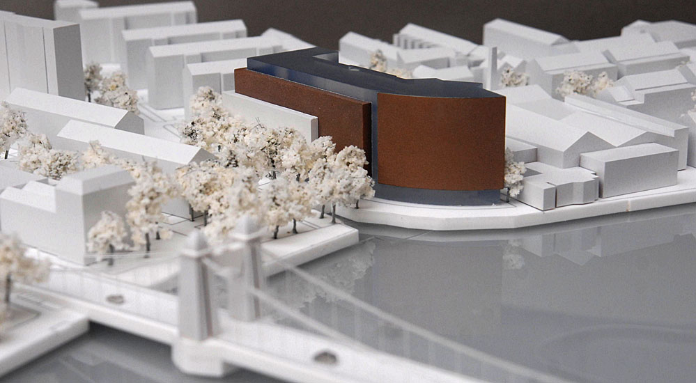 1:500 building within city context This model was commissioned to show the relationship of the massing of a building within its local city context. The site has acute and sensitive relationship with the river and the surrounding buildings and structures. Related